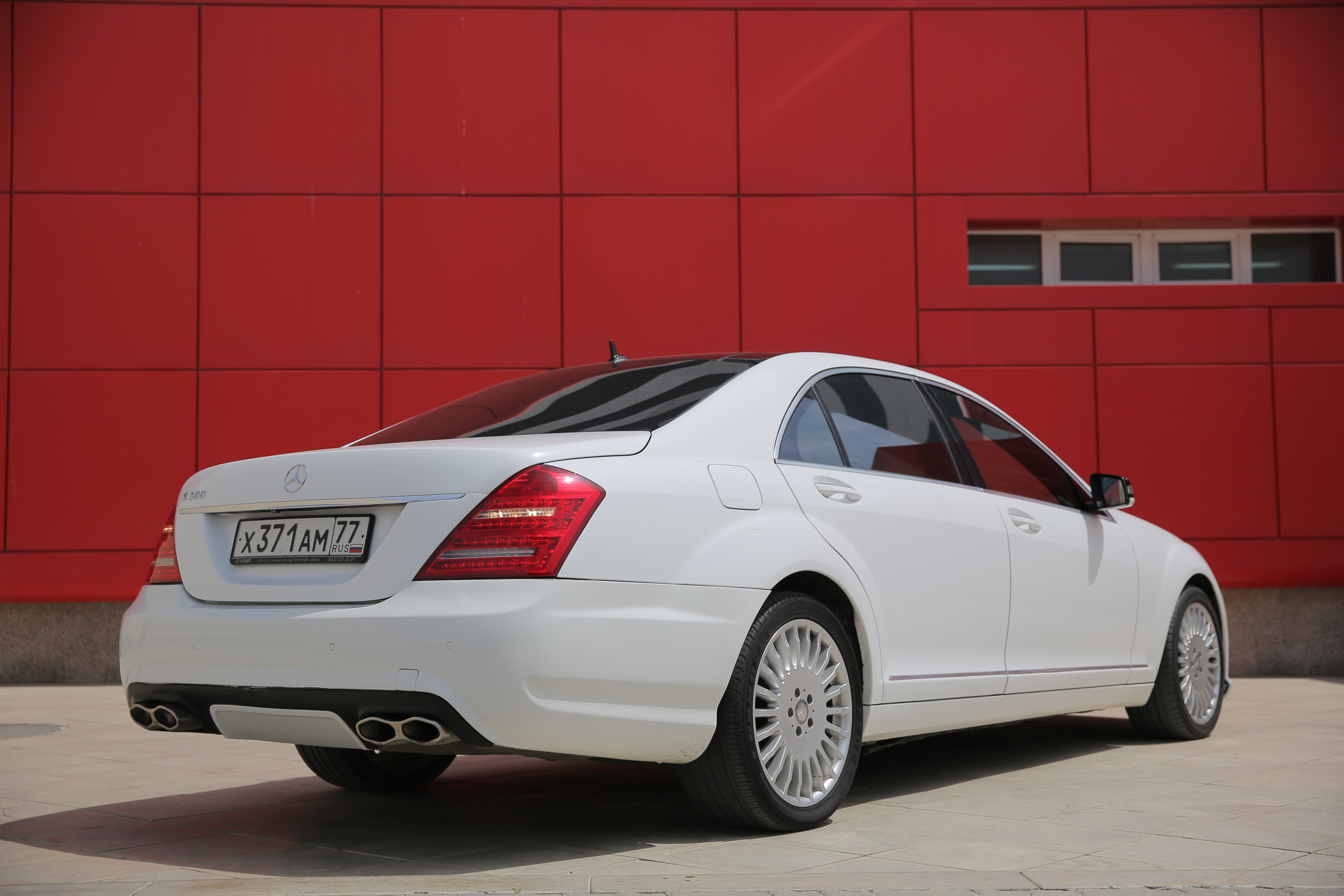 Прокат автомобиля представительского класса Mercedes S 500 белого цвета с водителем в Луге
